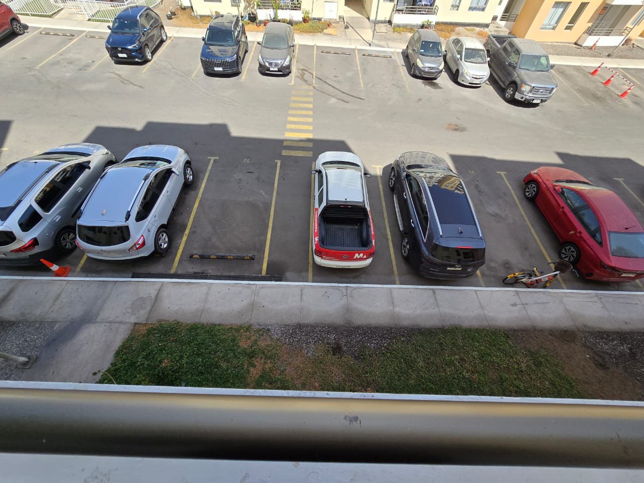 Los balcones con vista a la piscina y al estacionamiento.